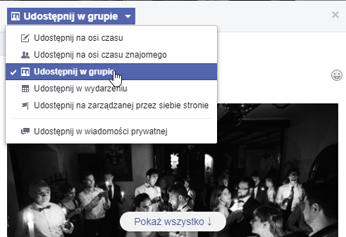 Pamiętaj aby w sekcji "Tożsamość" wybrany był właściwy fanpage - ten na którym został opublikowany wcześniej post.