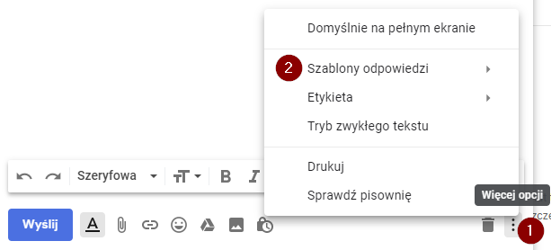 Aby zacząć tworzyć szablony musisz utworzyć nową wiadomość i kliknąć przycisk "więcej opcji"