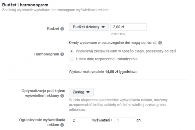 Dzięki temu rozwiązaniu wszyscy, którzy przeczytali moją ofertę w ciągu ostatnich 60 dni będą otrzymywali przypomnienie o rezerwacji terminu. Reklamę z przyciskiem "Zadzwoń teraz" można skonfigurować po wybraniu celu marketingowego "Zasięg". Dodatkowo w trakcie konfiguracji kampanii można zdefiniować częstotliwość wyświetlania takiej reklamy. Jest to pomocne jeśli nie chcemy być zbyt nachalni. Myślę, że rozsądnie jest wyświetlić taki komunikat raz lub dwa na dzień.