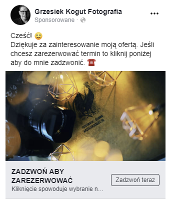 Jeśli interesuje Cię temat pozyskiwania zapytań z reklam, to polecam mój kurs "5 schematów kampanii reklamowych na Facebooku dla fotografa ślubnego". Znajdziesz tam skuteczne schematy gotowe do zastosowania. Każdy ze schematów jest przynajmniej dwuetapowy czyli zawiera reklamę docierającą do nowych odbiorców oraz remarketing.